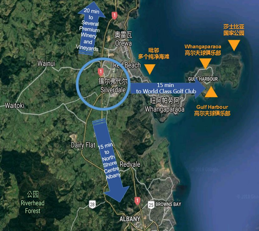 Silverdale has beautiful environment, affordable housing price and high-decile local schools, which make it much popular for families who want a stunning home with bigger lands, awesome garden and cozy homes, especially for those immigrants from Asia and Europe. Silverdale embraces some favorable places within short driving distance: 20 minutes to several premium winery and vineyards in Matakana; 15 minutes to central Albany-one of the richest community in north Auckland, and 10 minutes to 12 amazing beaches, world class golf club and Shakespeare Regional Park.